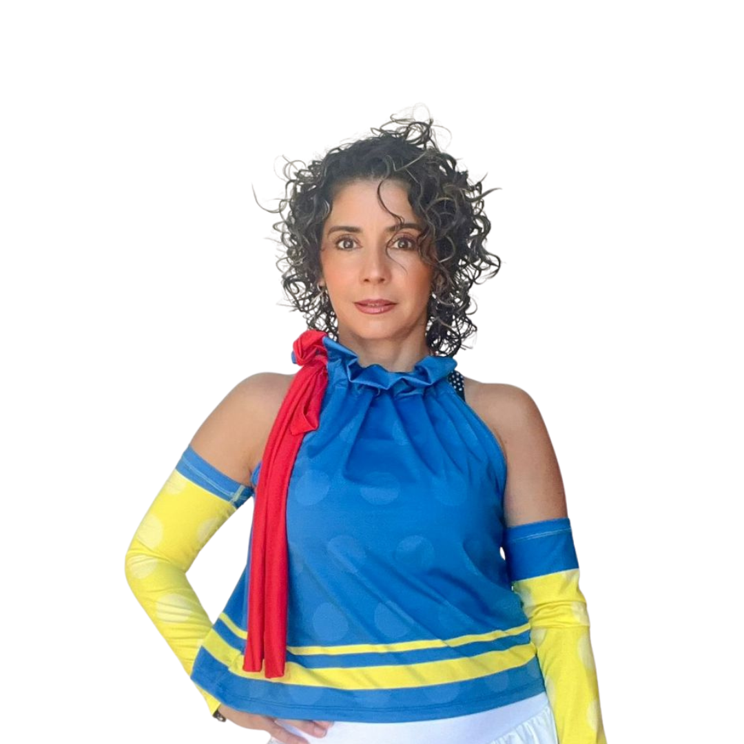 Blue base, yellow stripe accents, and a bold red tie that nods to classic courage ✨